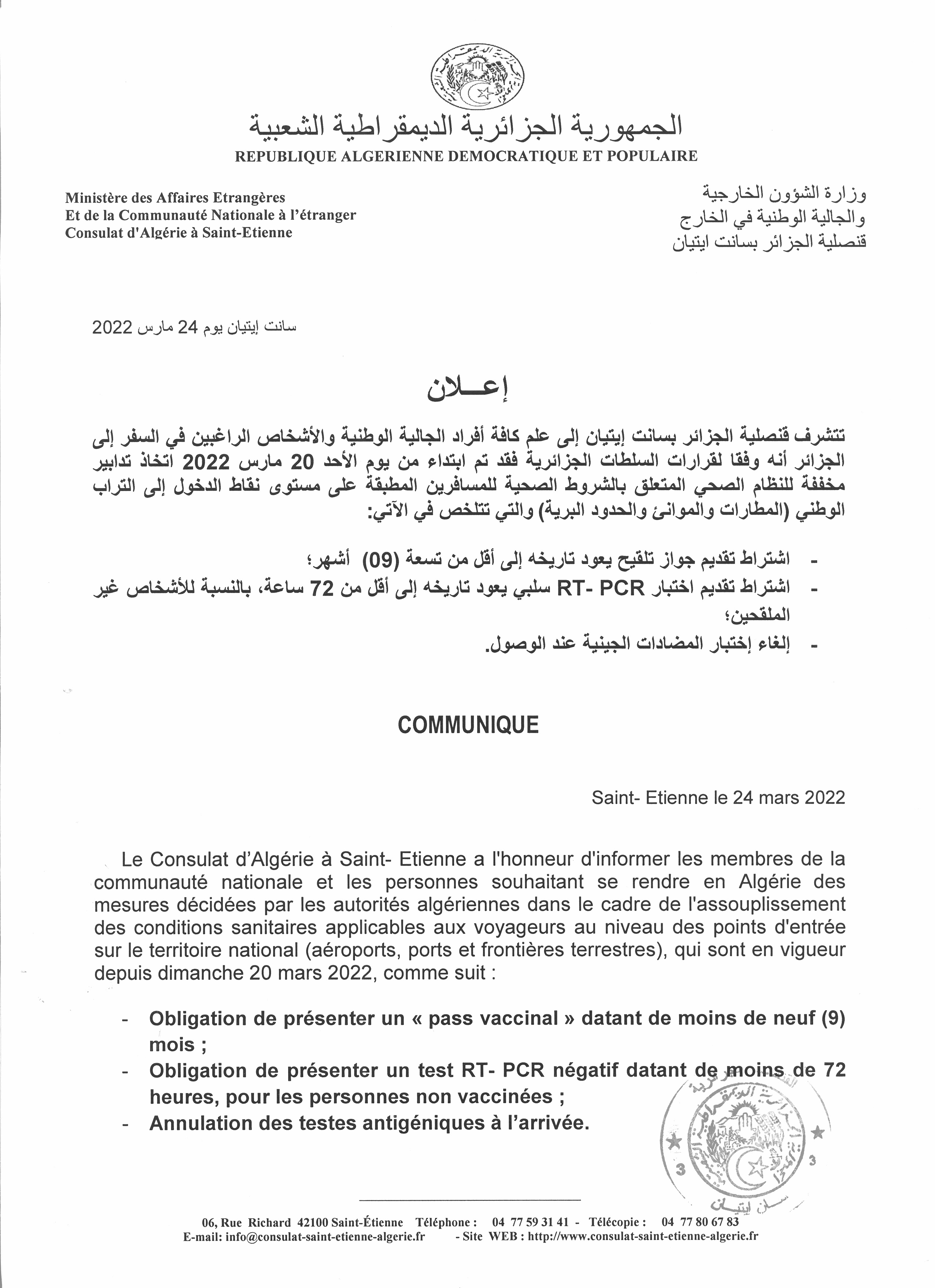 Bienvenue au Consulat d’Algérie à Saint-Etienne Nos bureaux sont ouverts du MARDI au SAMEDI de 8h30 à 15h00